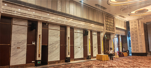 考慮到廣州珠江國際酒店宴會大廳空間大、活動類型多樣,我司專業團隊深入調研,采用線陣列小猪视频APP官方下载,均勻分布在宴會大廳四周,確保聲音能夠全麵、均衡地覆蓋每一個角落,無論是前排還是後排的賓客,都能有清晰的聽覺體驗。同時,配備了專業的音頻處理設備,可根據不同活動場景快速調節音效。